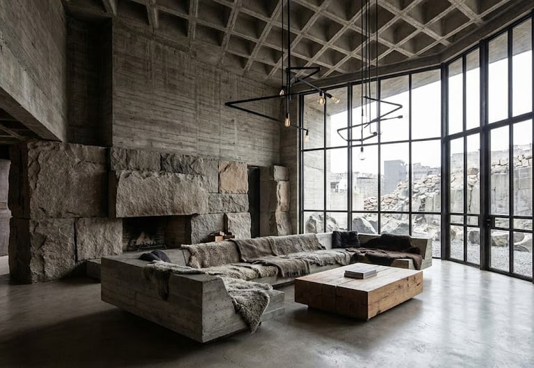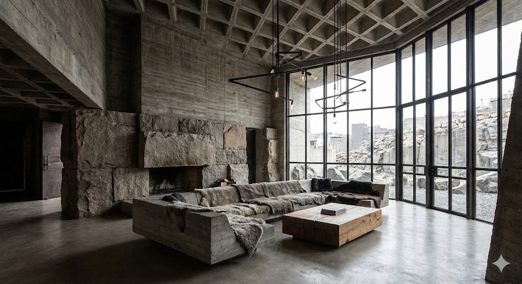 Brutalist Modern Interior Design is a bold, minimalist style that highlights raw materials like exposed concrete and steel, emphasizing structure, function, and architectural honesty over decoration.