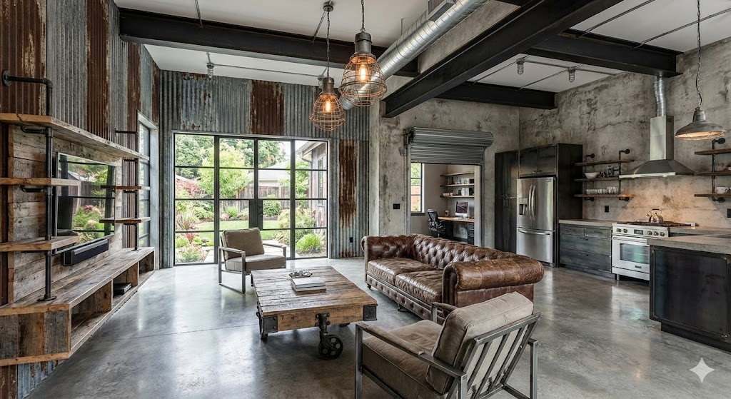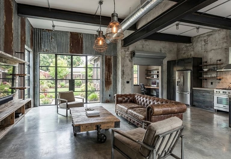 Industrial interior design is a raw, utilitarian style inspired by old factories and warehouses, highlighting exposed structural elements and unfinished materials to create an edgy, historically rooted aesthetic.