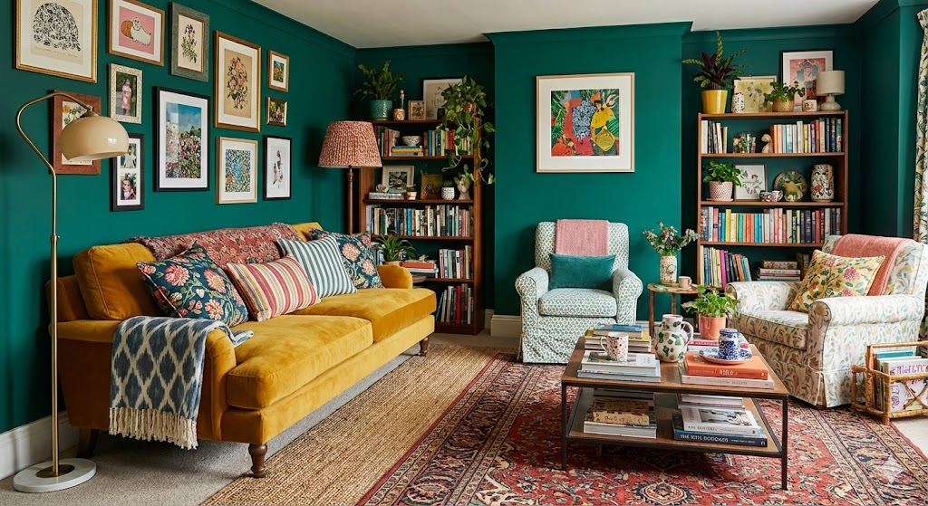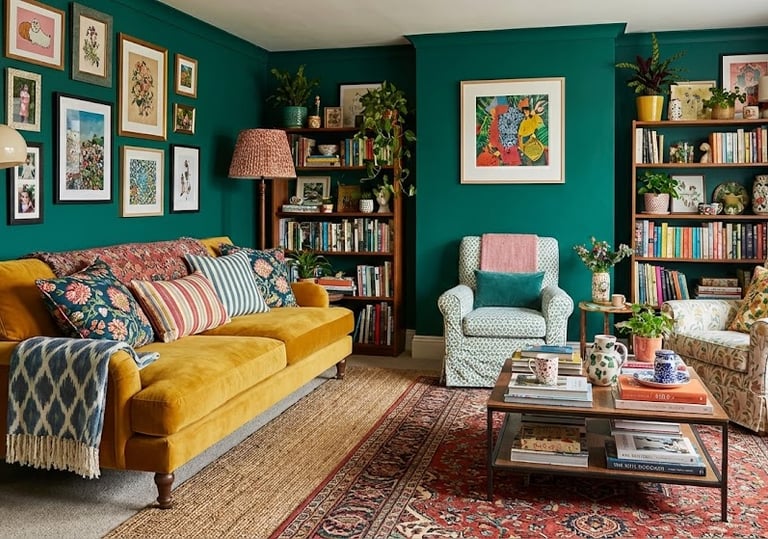 An interior design style that blends elements from different periods, cultures, and aesthetics to create a unique, harmonious, and visually dynamic space.