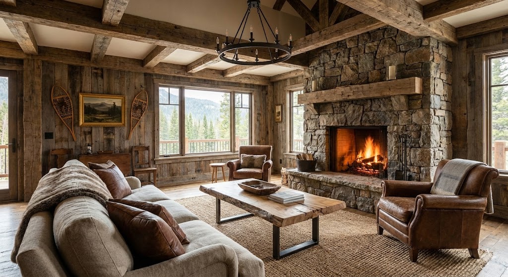 It is a warm and natural design approach that highlights raw wood, stone, and organic textures to create a cozy, lived-in atmosphere inspired by the countryside..
