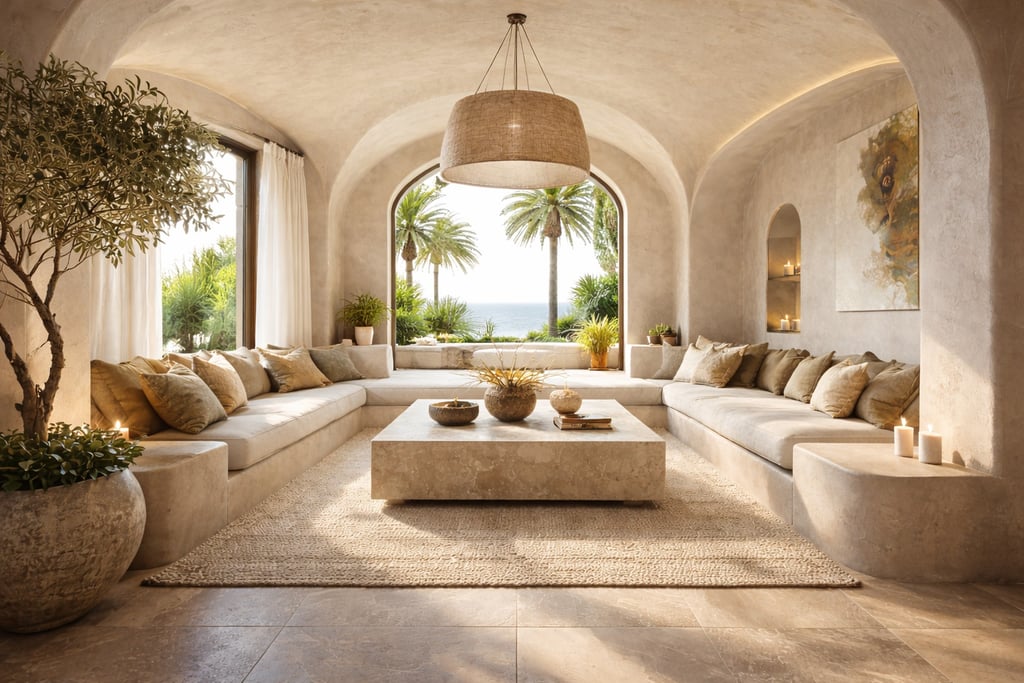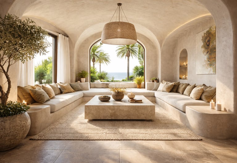 Mediterranean design is a warm and romantic style inspired by Spain, Italy, and Greece that emphasizes indoor-outdoor living, natural light, airflow, and earthy tones reflecting sun-drenched coastal landscapes.