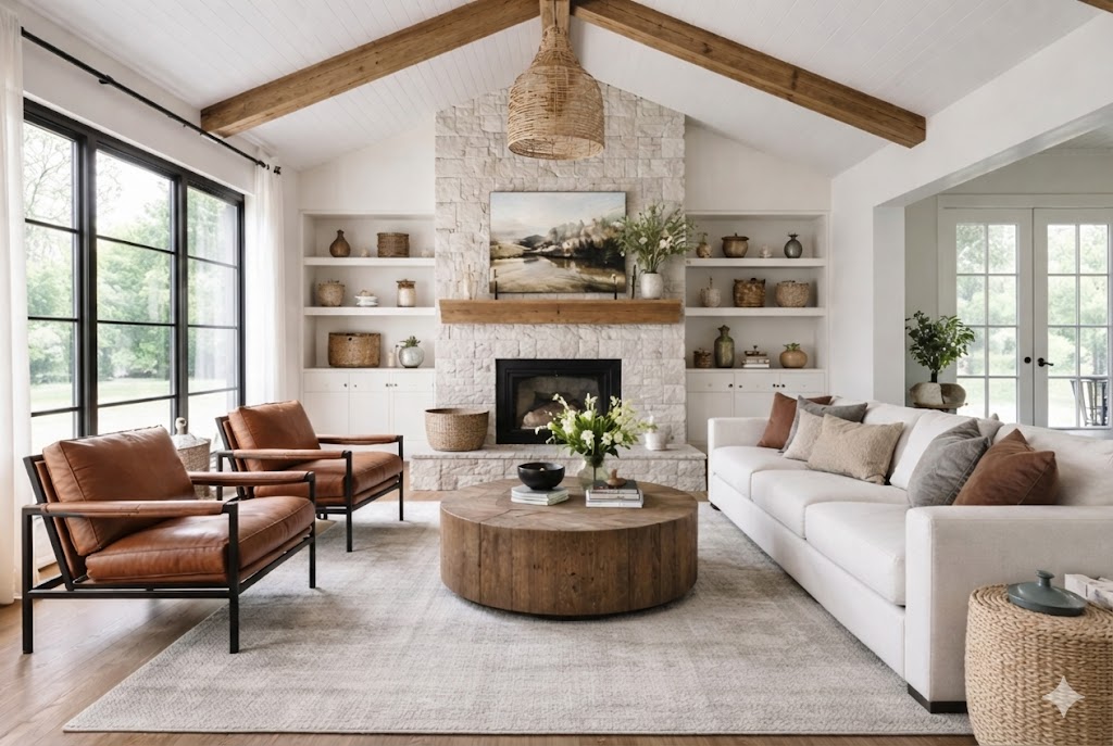 It is a warm and practical design style inspired by rural living, combining rustic simplicity and natural materials with either traditional character or modern touches to create cozy, welcoming spaces.