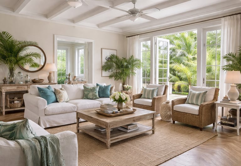 Brings the outdoors in by blending European colonial influences with the light, breezy, and vibrant spirit of island life, creating relaxed interiors filled with sunshine, airiness, and a tropical sense of escape.