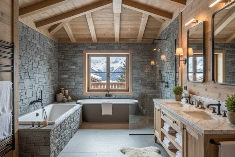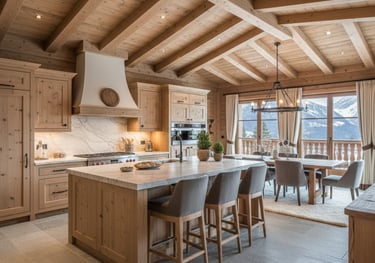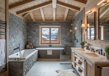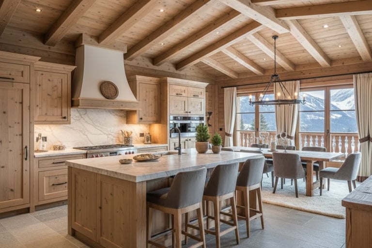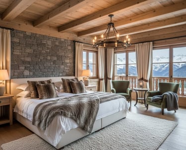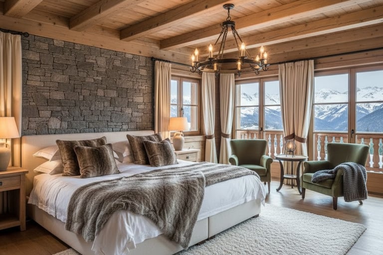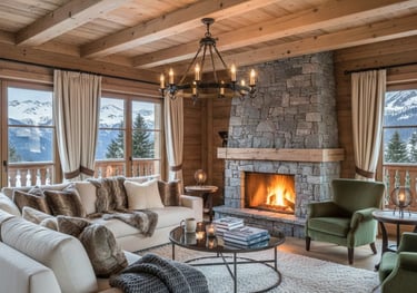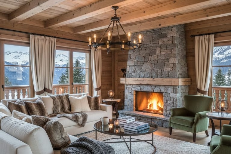 Alpine Chic, often referred to as Swiss Chalet style, is an elevated and luxurious interpretation of mountain living. Inspired by the high-end chalets of the Alps, it distinguishes itself from traditional rustic styles by blending raw, natural elements with refined European glamour.