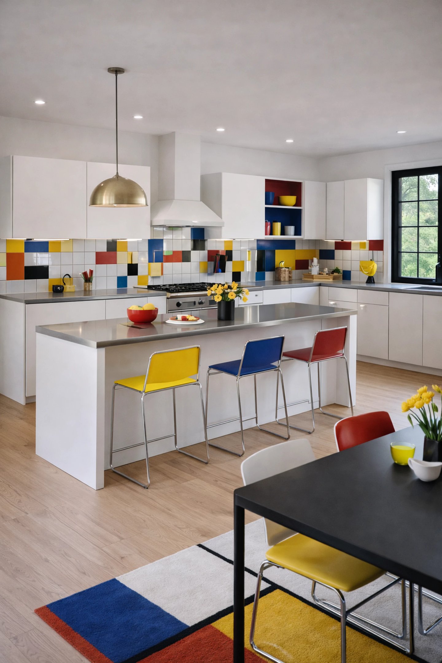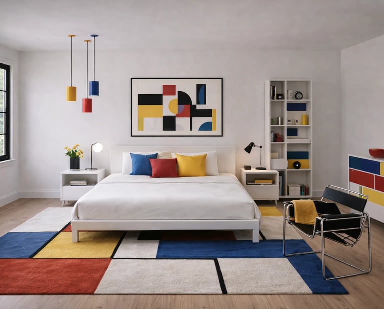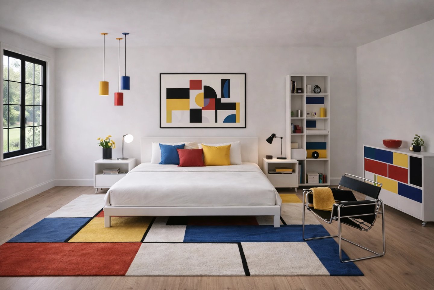 Primary Color Theory: Influenced by De Stijl and modernist art, Bauhaus interiors often feature a controlled and strategic use of primary colors (red, blue, and yellow) against neutral backgrounds.