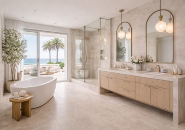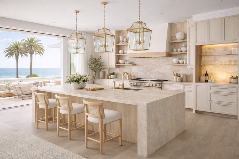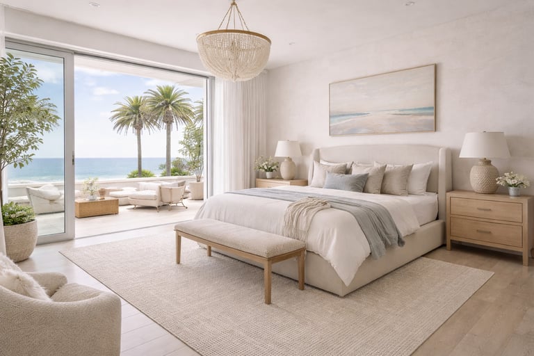 Coastal design is the art of bringing the serenity of the seaside indoors. Rather than relying on kitschy nautical themes like anchors or shells, it focuses on capturing the light, airy, and breezy feeling of the beach. The "California Coastal" variation is a more tailored and modern subset, blending the beach aesthetic with a cool, casual West Coast vibe that emphasizes indoor-outdoor living and a slightly more grounded, earthy palette.