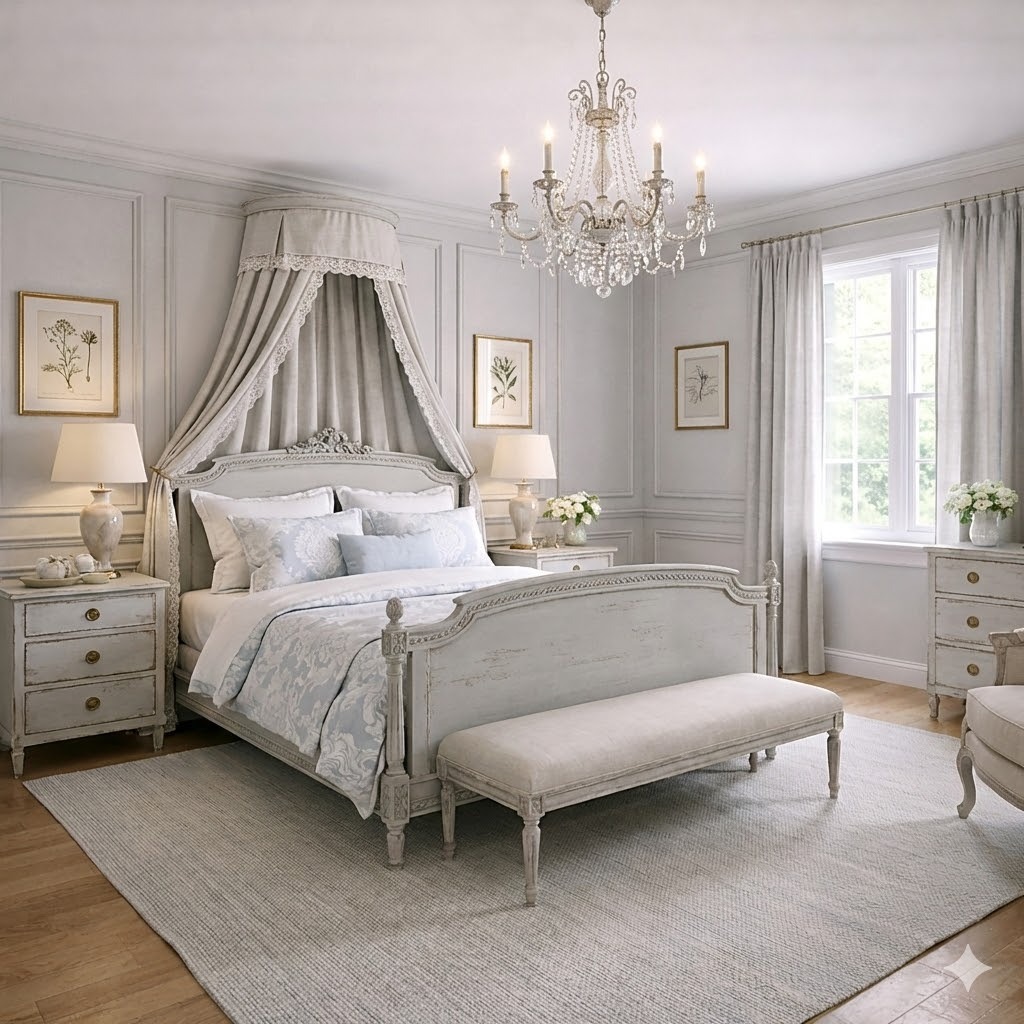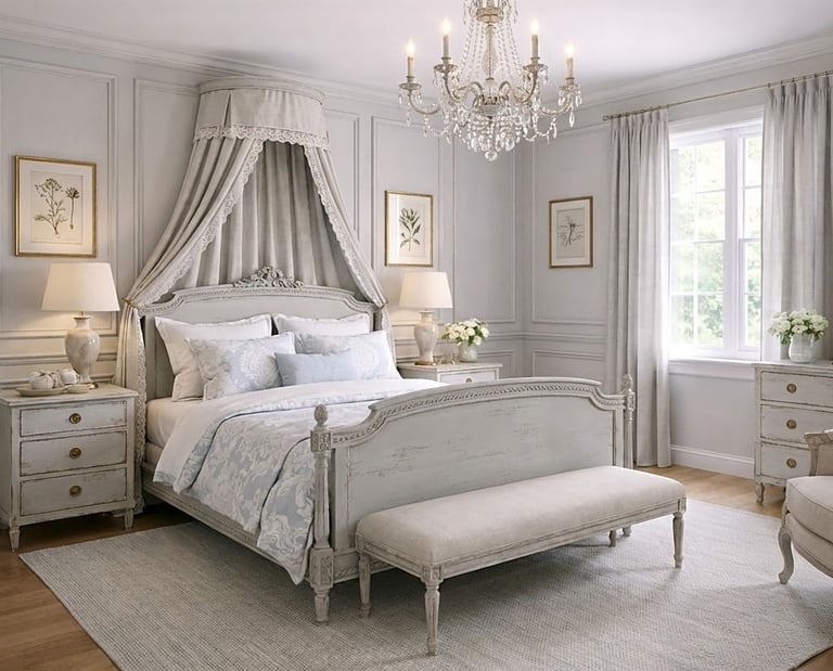 Restrained Ornamentation: While it utilizes classical motifs, the style is defined by a "less is more" approach to opulence, stripping away heavy gilding in favor of soft, painted finishes.