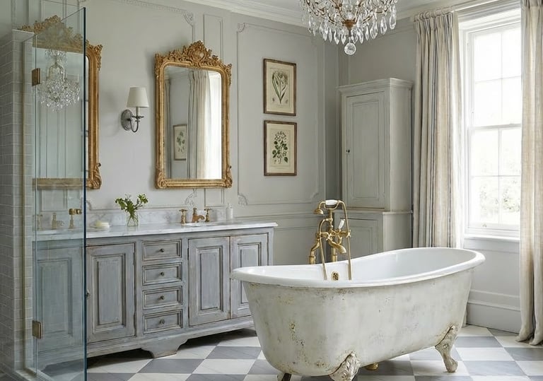 Versatile & Soothing: The muted, cool-toned color palette is incredibly versatile and creates a tranquil, spa-like environment that blends seamlessly with other styles like French Country or Shabby Chic.