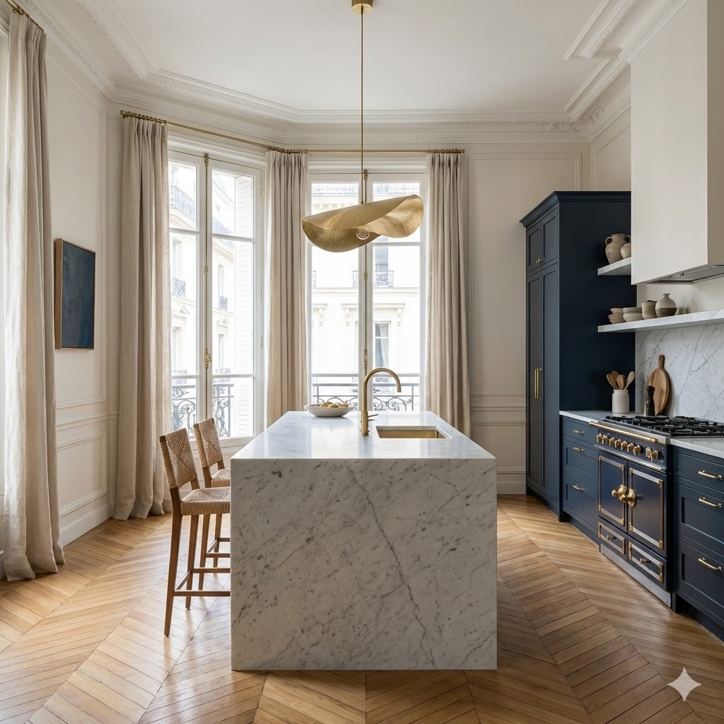 Parisian interior design is a refined yet effortless aesthetic rooted in 19th-century Haussmannian architecture, where classical elegance meets understated modernity. It is a professional approach that prioritizes balance over decoration—finding the harmony between ornament and restraint, history and contemporaneity. It is defined by "curated nonchalance," creating spaces that feel collected over time rather than overly styled.