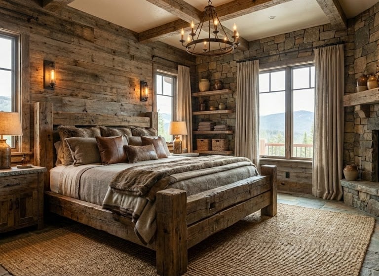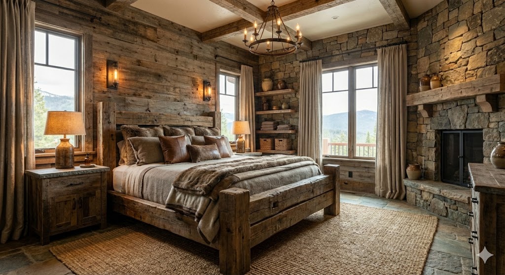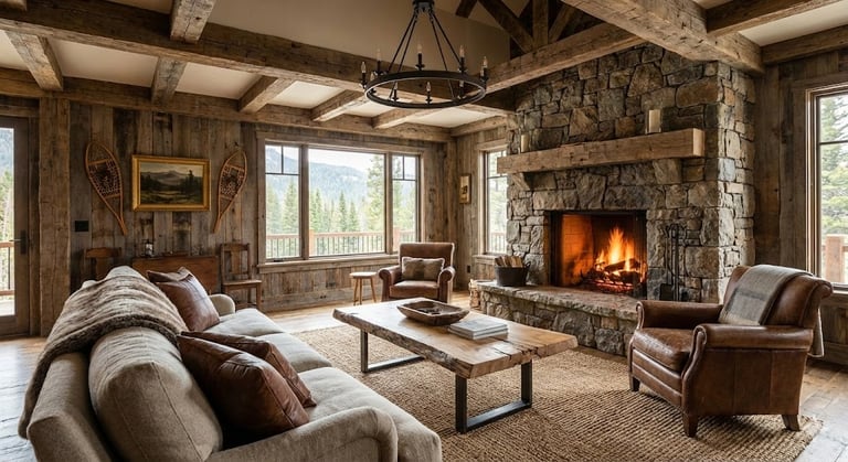 Warmth & Texture: The style relies heavily on tactile sensations. Every surface—from a rough-hewn beam to a soft sheepskin rug—is chosen to provide physical and visual warmth.