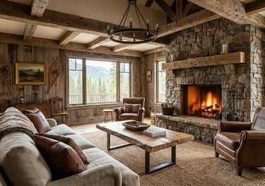 Rustic interior design is a style that emphasizes rugged, natural beauty and a connection to the outdoors. It focuses on organic textures, aged materials, and a sense of unrefined warmth. Rather than following perfect factory finishes, it celebrates the imperfections of nature—knots in wood, the grain of stone, and the patina of metal. It is an aesthetic that prioritizes comfort and a "lived-in" feel over formal rigidity.